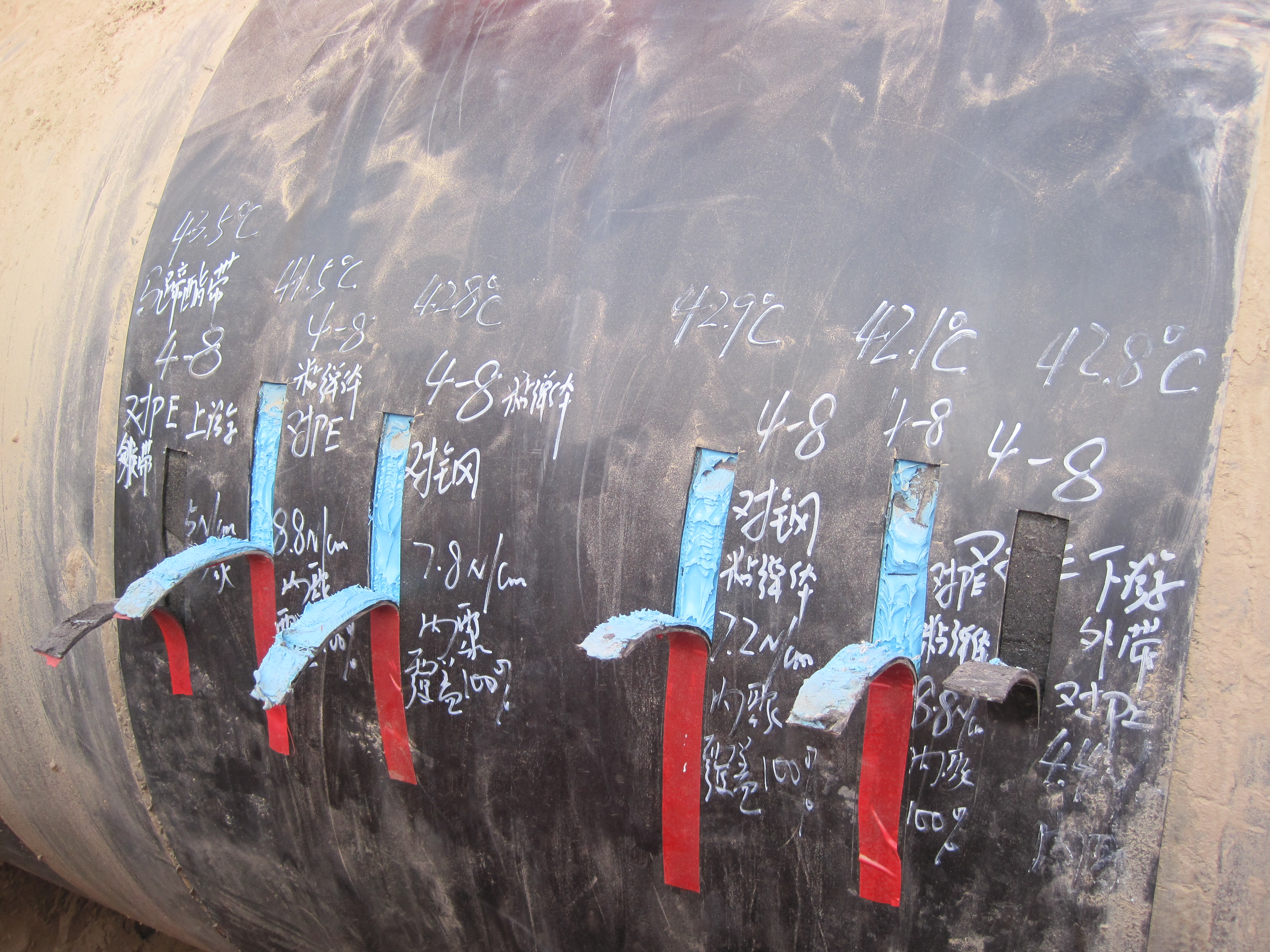 粘彈體膠帶管道修復施工后6個月剝離結果
