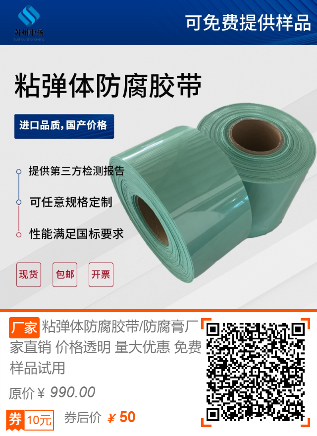 4.粘彈體防腐膠帶可以使用10公分或15公分為宜。手動纏繞粘彈體膠帶時,膠帶應該有一定的變形能力,以保證搭接處不出現褶皺。