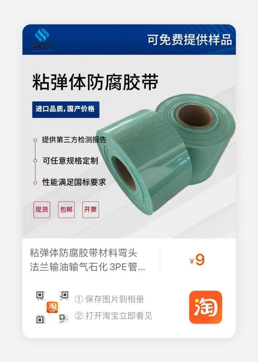 那么怎么選擇低價質量好的粘彈體防腐膠帶呢,可以來咱們蘇州中揚了解下,廠價直銷,沒有中間商賺差價,質量可靠,可免費提供樣品先試用檢測,明碼標價,掃描圖片二維碼直接可跳轉淘寶查看價格,量大還可優惠。